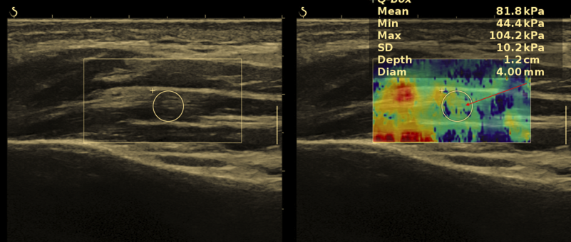 Badanie jest nieinwazyjne, dostępne i może być wielokrotnie powtarzane w trakcie leczenia. - Elastografia – jakościowa ocena napięcia mięśni